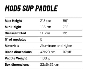 Pagaia per SUP telescopica in 5 moduli, ideata per chi ha l’esigenza di trasporto in zaini compatti. Galleggiante e regolabile con tacche di centraggio e altezza, sistema di blocco