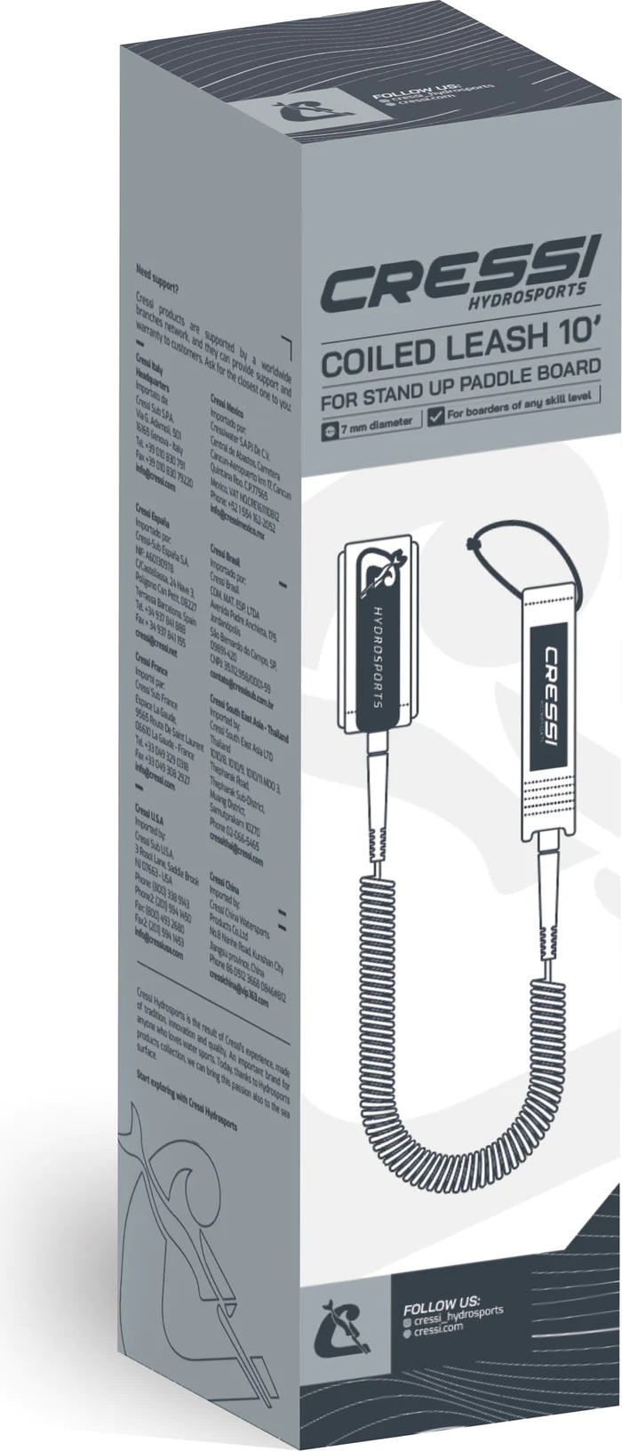Leash da caviglia a spire allungabile (max 10’) per non intralciare durante la pagaiata. Corpo in robusto tpu e cavigliera in neoprene con inserto in acciaio per resistere alle maggiori sollecitazioni. Massimo comfort e sicurezza per lo stand up paddling.