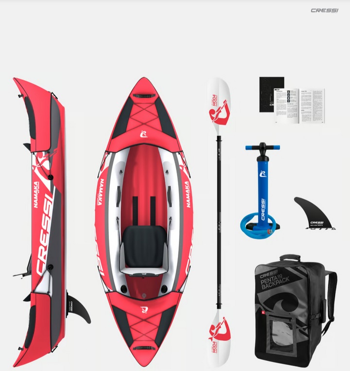 Namaka e’ un kayak gonfiabile Cressi nato per esplorare le coste e la natura, per muoversi silenziosi e arrivare dove a nuoto o in barca non è possibile, senza emissioni e nel massimo rispetto dell’ambiente marittimo.