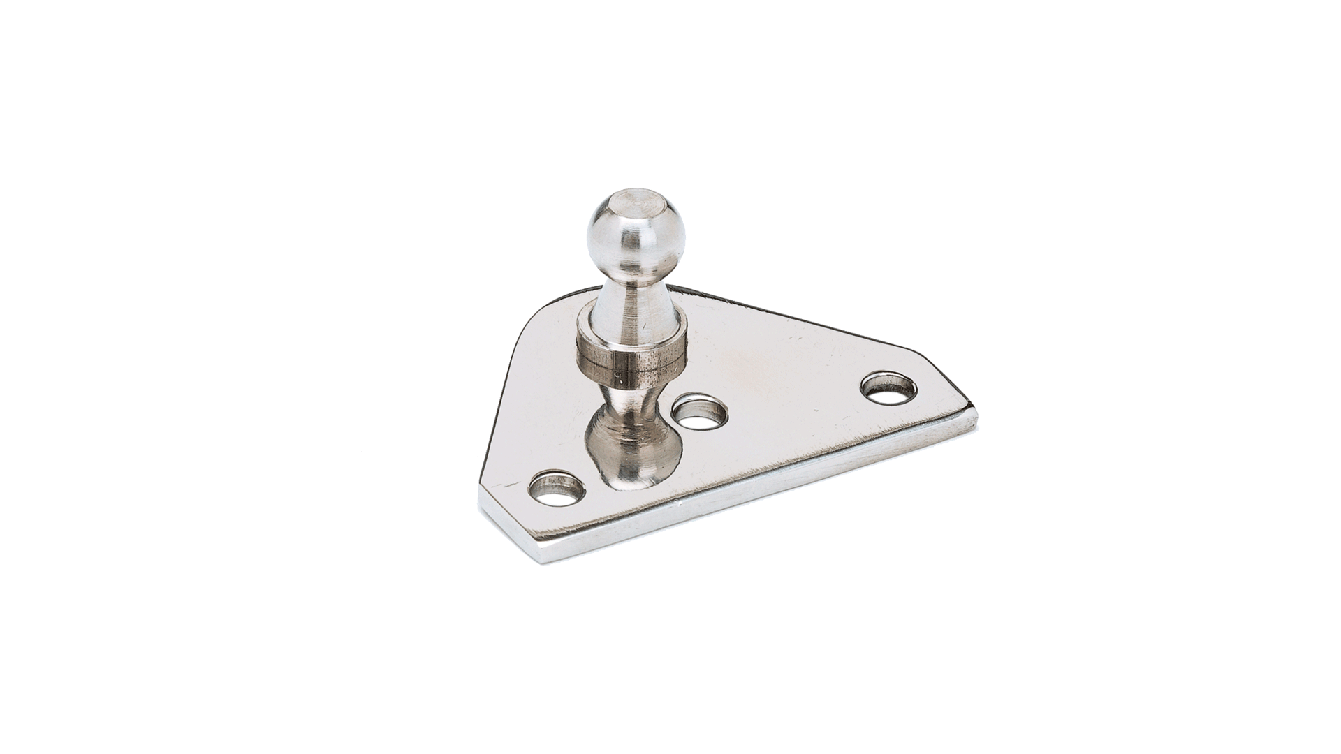 Supporto staffa piana e perno per attacco a sfera in inox lucidato.