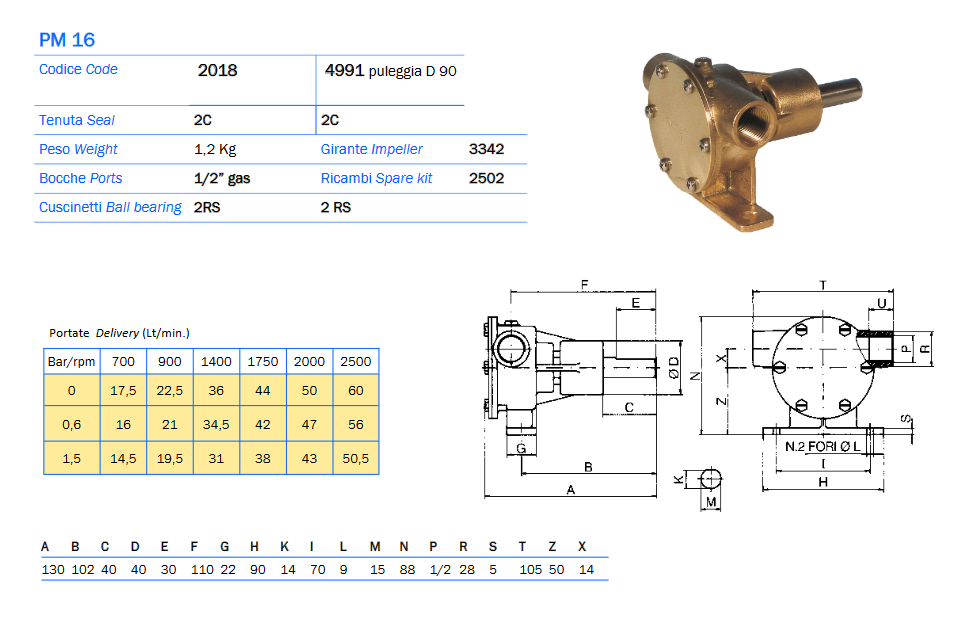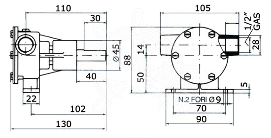 Pompa Autoadescante in bronzo, con girante in neoprene per raffreddamento motori, bocche da 1/2.