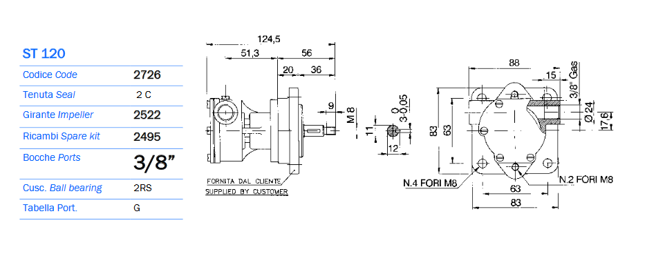 Pompa Autoadescante in bronzo, con girante in neoprene per raffreddamento motori, bocche da 3/8.