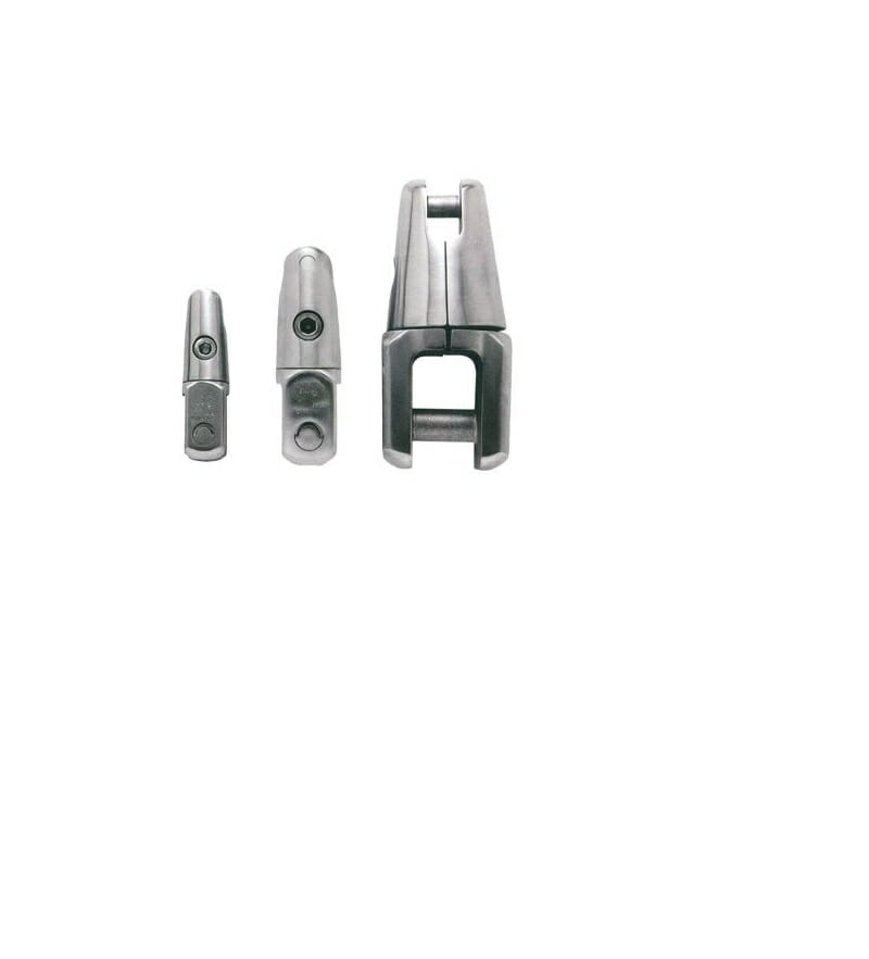 Giunto girevole per ancora. In acciaio inox AISI 316. Scorrimento perfetto dell’ ancora nel puntale senza intoppi o danni alle pulegge. Raddrizzamento automatico e corretto posizionamento dell’ ancora a bordo. Tenuta dell’ ancora sul fondo senza torsioni sulla catena.