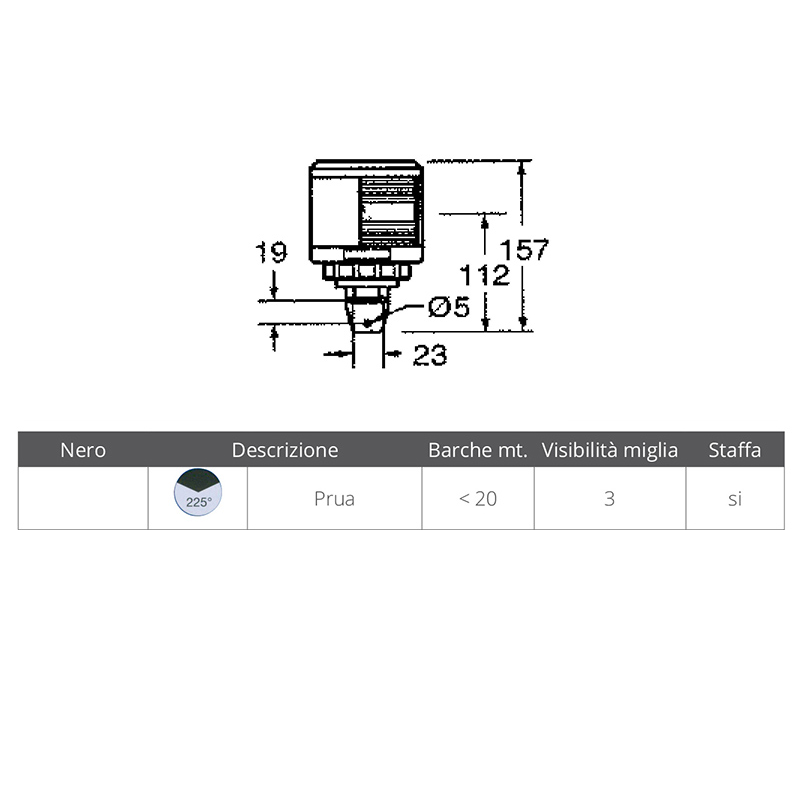 Fanale di via omologato R.I.Na. e MED 96/98 – EC per imbarcazioni commerciali, in policarbonato nero rinforzato, staffa a parete in acciaio inox completo di attestato di omologazione. Fornito senza lampadina, lente Fresnel in policarbonato resistente agli urti.