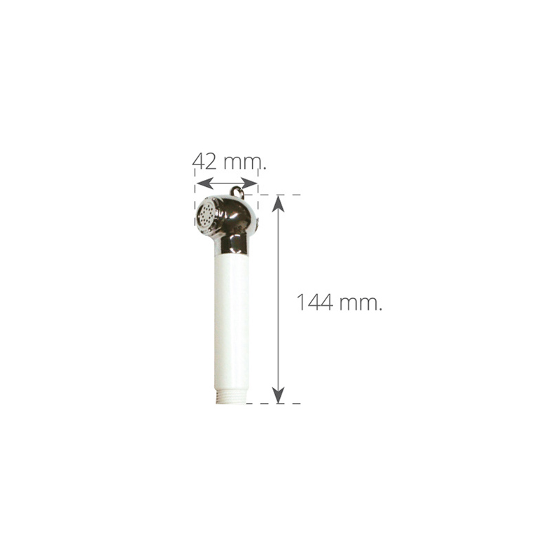 Doccia di ricambio, con testa in ottone cromato e impugnatura in ABS bianco, con pulsante push-off con ritorno automatico.