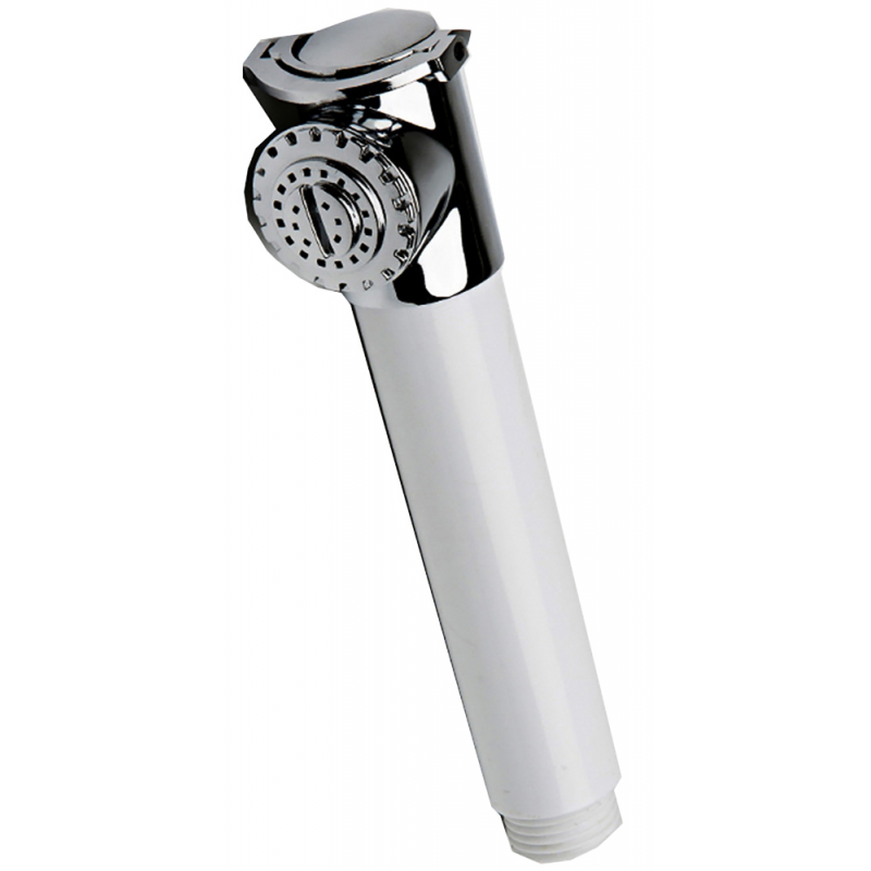 Doccia di ricambio, con testa in ottone cromato e impugnatura in ABS bianco, con pulsante push-off.