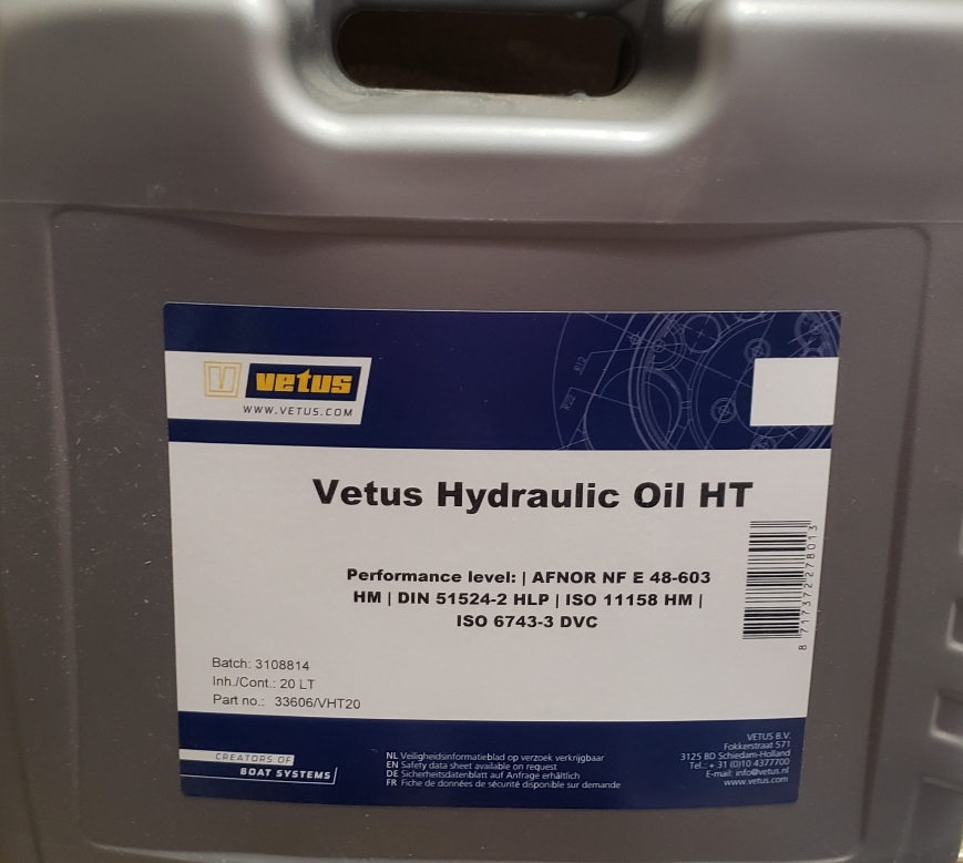 Vetus Hydraulic Oil HT Type VHT20 è un olio per sistemi idraulici.