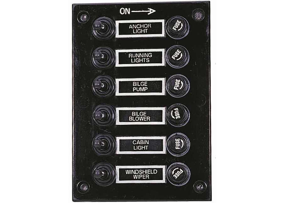 Pannello Elettrico 12V in ABS con interruttori impermeabili e fusibili completo di etichette prestampate.