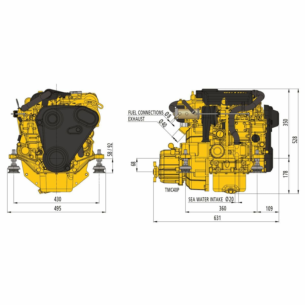 • Su richiesta, il filtro olio e gasolio possono essere installati sul lato frontale (H), rendendo la sostituzione più comoda possibile.