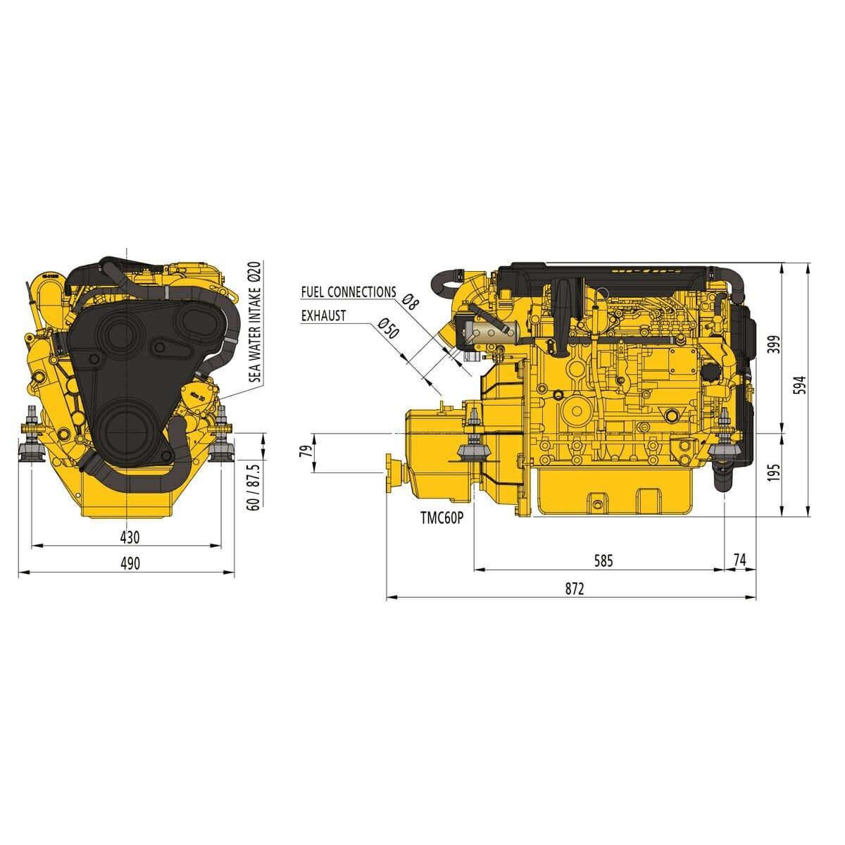• Su richiesta, il filtro olio e gasolio possono essere installati sul lato frontale (H), rendendo la sostituzione più comoda possibile.