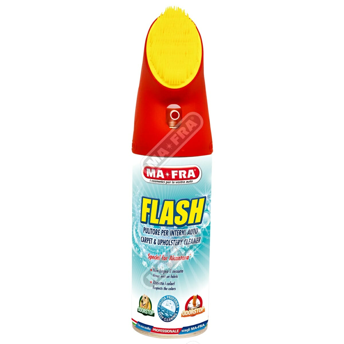 FLASH nasce dall’esigenza quotidiana di pulire gli interni e tappezzeria in maniera sempre più semplice e performante. Ideale per pulire a secco sedili, tappetini e finiture in ogni tipo di rivestimento, tessuto, pelle, velluto e Alcanatara.