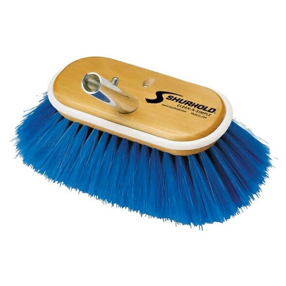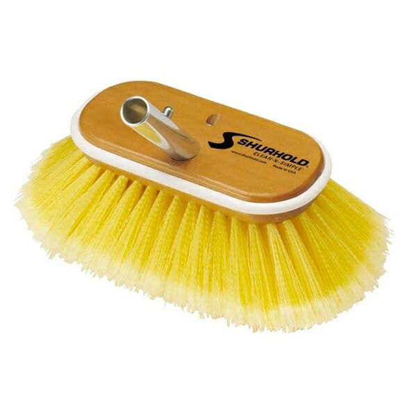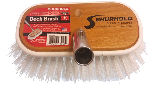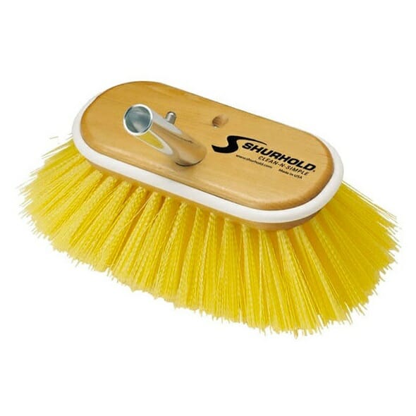 Spazzola Shurhold classica da 6” (15 cm) con setole di diversa durezza per la pulizia in barca di qualsiasi superficie. Questo spazzolone fa parte del sistema Shurhold e si abbina con tutti i manici con attacco rapido Shur-Lok che permette l’innesto di oltre 40 accessori sullo stesso manico. Gli spazzoloni Shurhold sono durevoli ed estremamente efficaci nella pulizia di ogni tipo di sporco su scafi in resina o gommoni. Il corpo della spazzola è in legno marino con una guarnizione perimetrale in gomma per proteggere le superfici con cui viene accidentalmente ad urtare durante le operazioni di pulizia.
