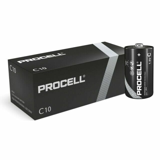 Le batterie alcaline C (LR14) industriali Procell sono progettate per offrire prestazioni elevate in dispositivi professionali, come tastiere di sicurezza e rubinetti automatici.