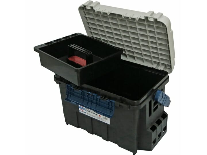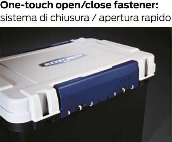 Nuovo Bucket Mouth BM-9000 Meiho di medie grandi dimensioni ideale per la pesca sia dalla riva che dalla barca, utilizzabile anche come sedia. Molto resistente, supporta fino a 516 kg di peso. Il volume interno è di 35 litri, predisposto per contenere scatole Meiho di varie misure. La maniglia può sopportare fino a 179 kg di peso. Il coperchio della BM-9000 può essere aperto da entrambi lati. All’interno contiene un comodo vassoio per alloggiare piccoli accessori, pinze, forbici, ecc. Apertura a coperchio su entrambi i lati. Può essere utilizzata anche come sedia e, grazie agli appositi accessori, acquistabili a parte, può essere completata con cuscino, porta canne, porta esche, porta borracce, ecc.