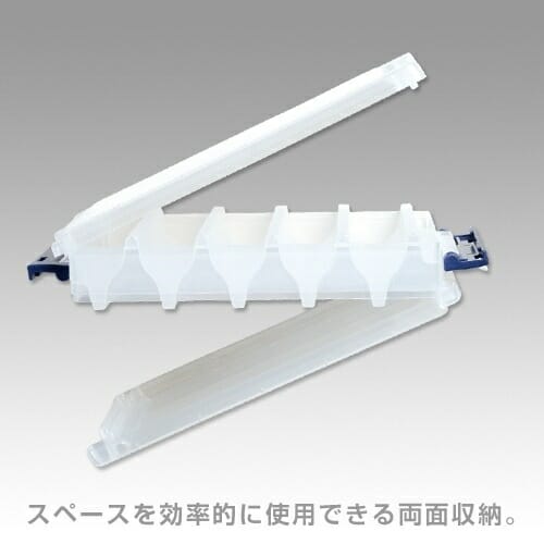 La Meiho Reversible 140 è una scatola porta artificiali con doppia apertura e forma interna a V che permette di posizionare sia le totanare che le esche artificiali, senza che le stesse si muovano durante il trasporto. Ha le stesse dimensioni della scatola Versus VS-3010, caratteristica che le permette di essere posizionata dentro le tasche dei marsuppi, borse e gilet. Si può aprire con una sola mano dovuto al tipo di apertura unica per ogni lato. Ottima la qualità dei materiali, prodotta in Giappone.