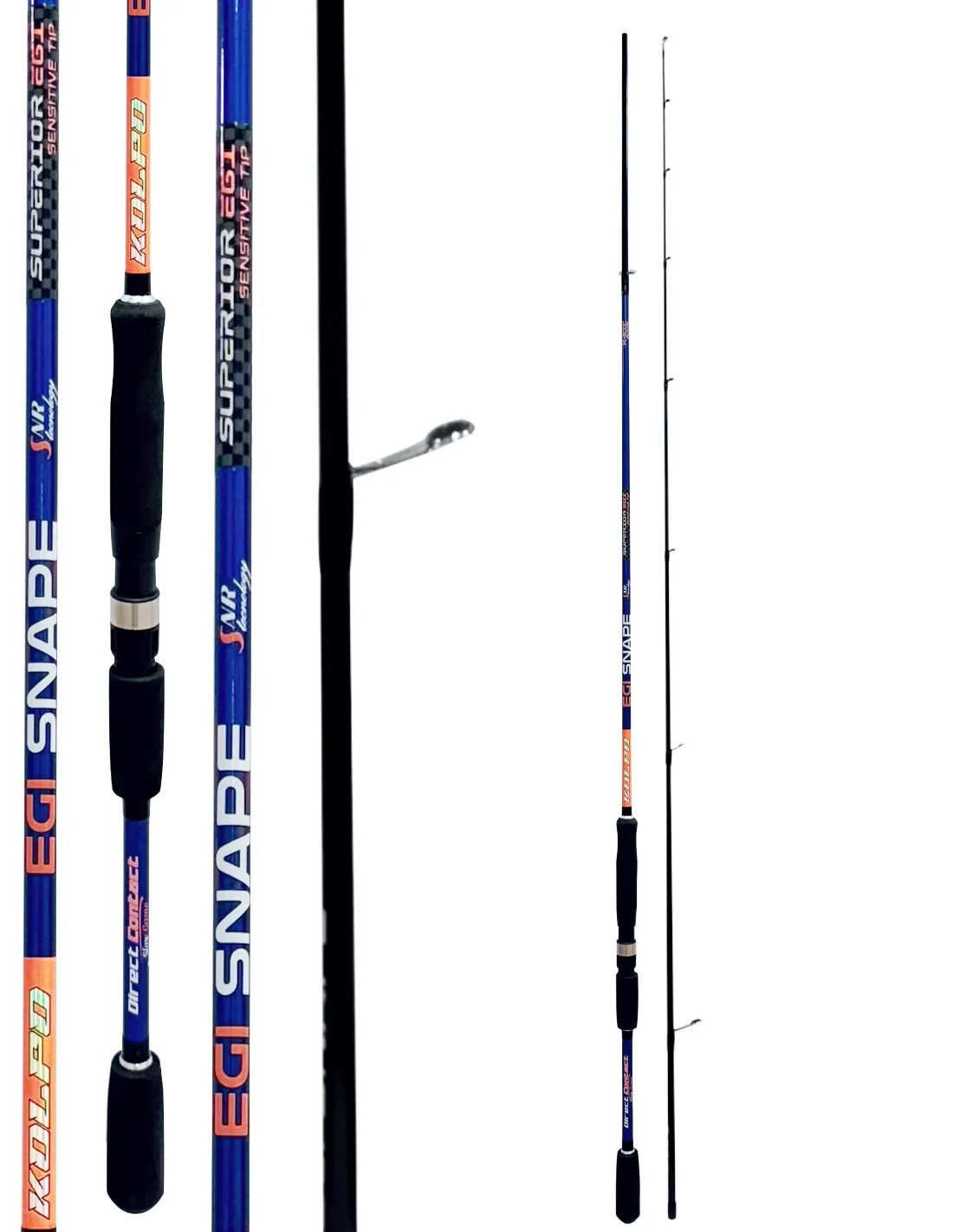 Canna in carbonio alto modulo, sottile e leggera, studiata per seppie, totani e calamari dalla riva o dalla barca.