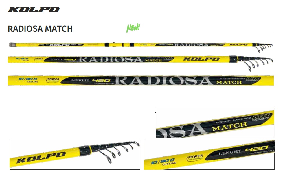 La Radiosa Match Kolpo è una canna pensata per gli amanti della pesca all’inglese e con la bombarda, offrendo un ottimo equilibrio tra prestazioni e prezzo.