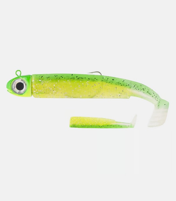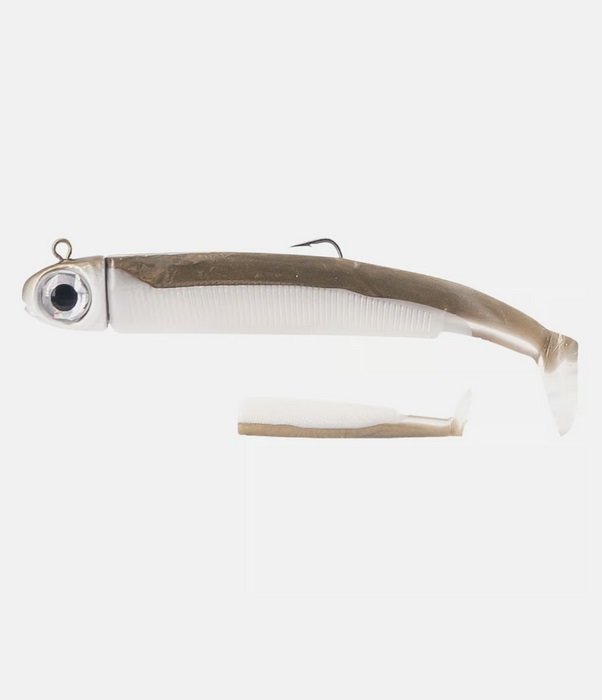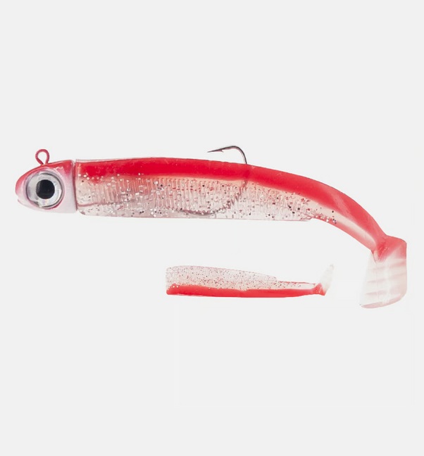 Occhi 3D maggiorati, Corpo extra morbido in silicone, Testa piombata, Amo snodato con sistema Texas.