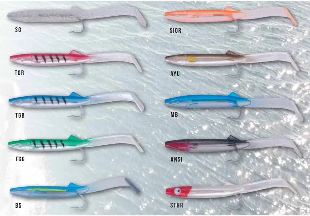 Artificiale siliconico, che imita la forma ed il movimento di piccoli pesci.
