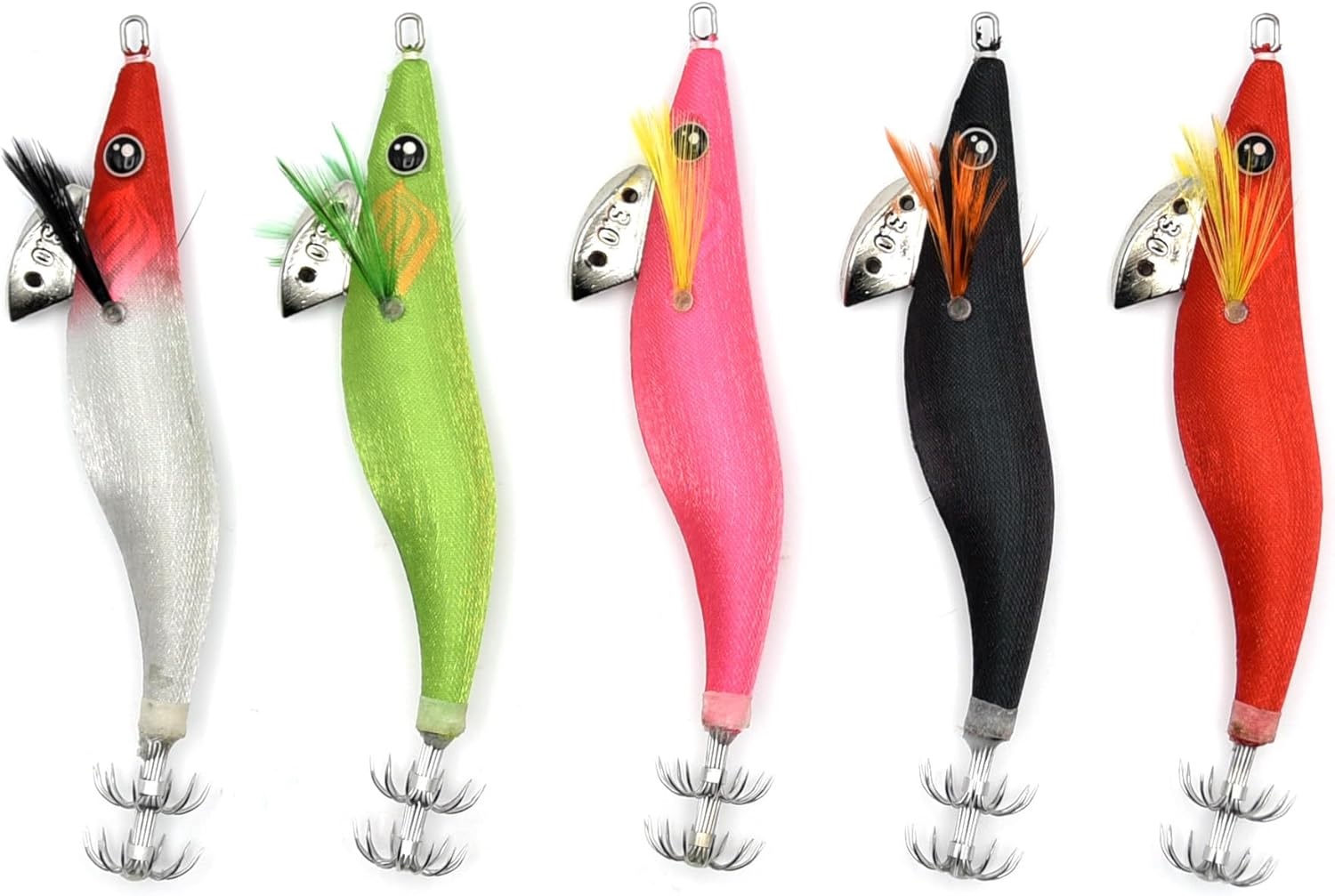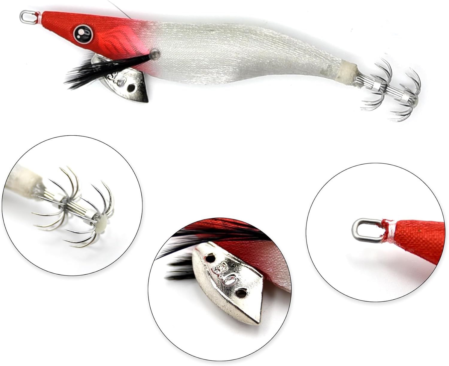 La deriva in piombo ha due fori per aggiungere peso all’egi, utile in condizioni di corrente forte o per raggiungere profondità maggiori.