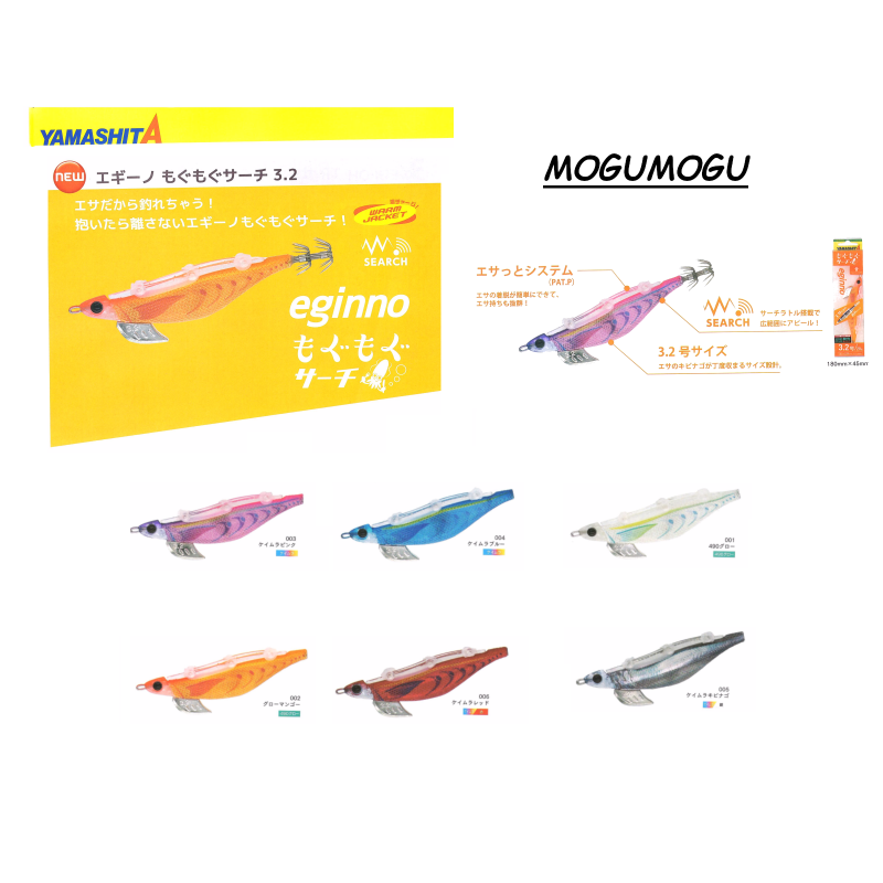 Il nuovissimo Yamashita Eginno MoguMogu Search 3.2 è stato studiato e progettato per catturare seppie e calamari in modo facile. Questa nuovissima totanara Yamashita ricava tutta la sua naturale potenzialità nella combinazione EGI + ESCA. I fattori che rendono il nuovo eginno facile nell’uso e micidiale nella resa sono nell’ordine: il movimento e la posizione tattica con cui staziona sul fondo, la naturale visibilità del corpo esaltata dalle attrazzioni luminose 490 GLOW o KEIMURA presenti nel rivestimento dell’artificiale, il richiamo “olfattivo” che l’Eginno rilascia una volta innescato ed infine il richiamo sonoro a 690 HZ che uno speciale sonaglio inserito nell’artificiale emette durante i brevi movimenti di ricupero intervallati da soste. Yamashita Eginno MoguMogu Search #3.2 può essere usato sia di GIORNO che di NOTTE, con una o più canne contemporaneamente ed è velocissimo da preparare. Vediamo nel dettaglio come si usa: 1. montare sulle schiena dell’artificiale, fissandolo con l’apposito elastico in dotazione, un pesce o un pezzo di pesce (meglio se sardina fresca). 2. agganciare la totanara ad una girella precedentemente montata sulla canna. 3. Lanciare in mare l’eginno e farlo affondare, aspettare 15/20 secondi quindi recuperare alzando la punta della canna, poi far tornare l’esca sul fondo e ripetere l’operazione con le modalità e i tempi di intervallo precedentemente descritti fino a riva. La presenza del cefalopode sull’Eggino può essere avvertita per una variazione di peso percepita nella fase di recupero o per uno “strattone” dovuto all’attaco del cefalopode durante il recupero dell’Eginno. In questo caso ferrare dolcemente e recuperare in modo costante fino a riva dove il cefalopode può essere guadinato posizionando sempre il guadino nella parte posteriore del corpo del cefalopode. Yamashita Eginno MoguMogu Search #3.2 è perfetto per pescare dalla spiaggia, dalle scogliere o nei porti. Evitare le zone soggette a forti correnti. Impiega circa 2,8 secondi per affondare di 1 mt. Disponibile in 6 colori di cui 2 per i modelli 490 GLOW e 4 per i modelli KEIMURA , ha doppio cestello in acciaio inossidabile rivestimento termico che trasforma la luce in calore (WARM JACKET) e la deriva realizzata in stagno ecologico. Nella confezione trovi un elastico di scorta per fissare l’esca.