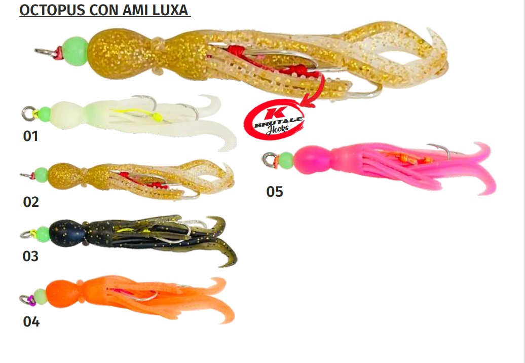 kolpo Yamashiro Luxa è un’Octopus montato con doppio assist hook che può essere abbinato a jig o teste piombate per la pesca verticale, l’Octopus permette di aumentare l’effetto attrattivo dell’artificiale utilizzato.