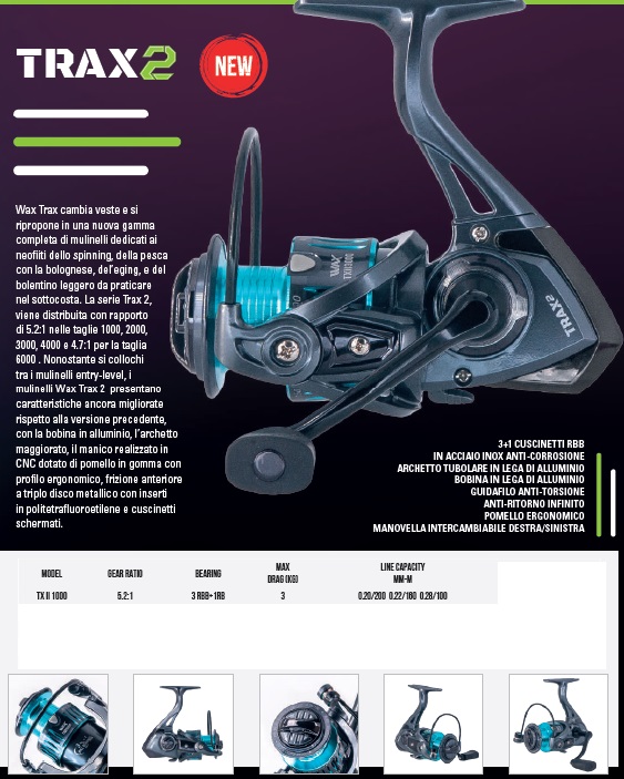 Wax Trax cambia veste e si ripropone in una nuova gamma completa di mulinelli dedicati ai neofiti dello spinning, della pesca con la bolognese, dell’eging, e del bolentino leggero da praticare nel sottocosta.
