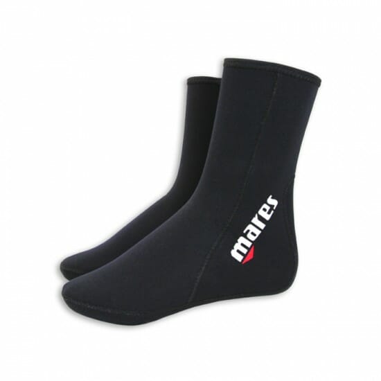Calzari Mares Classic 3mm. Senza suola, in neoprene bifoderato. Taglio anatomico, incollato e cucito.