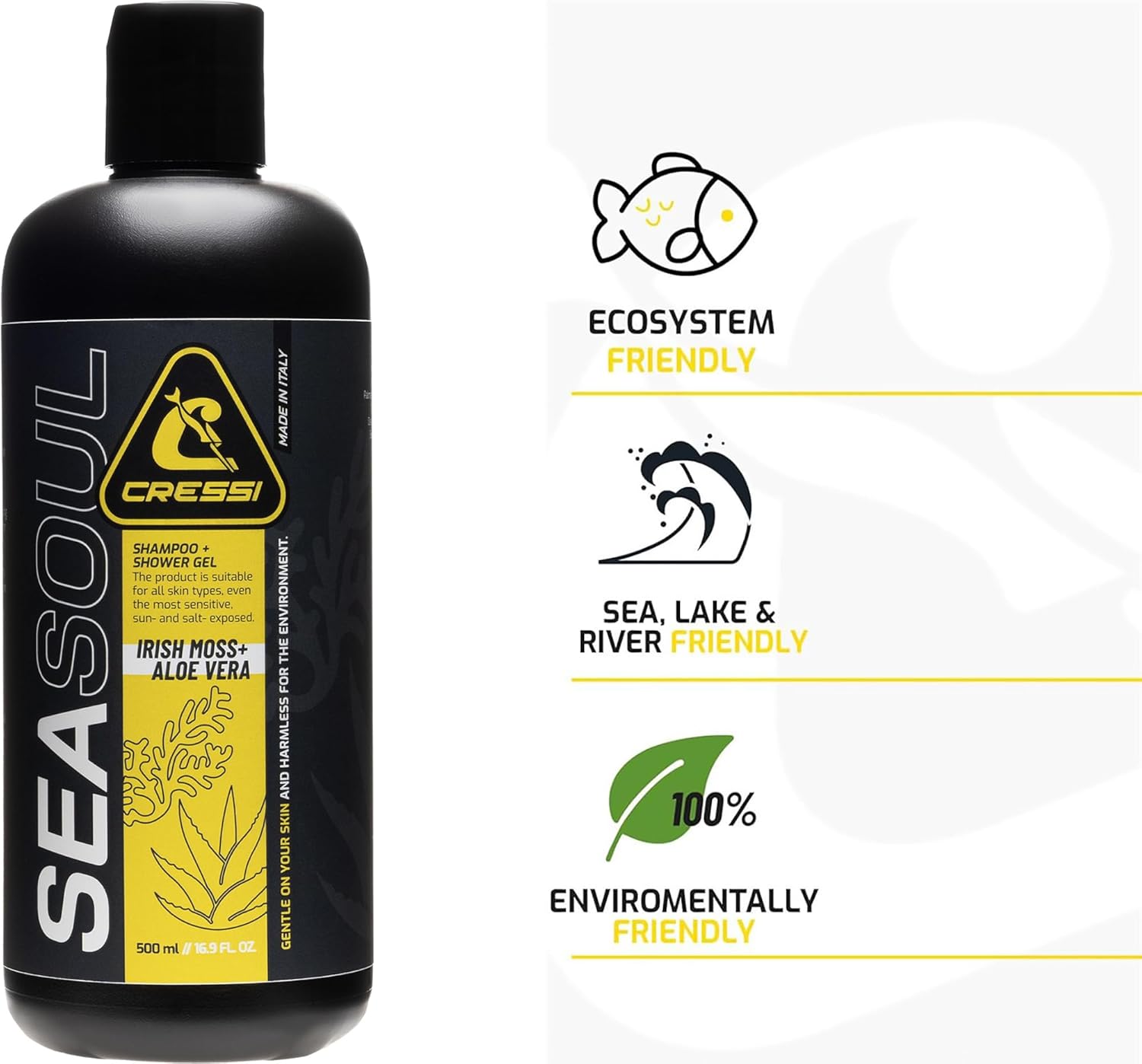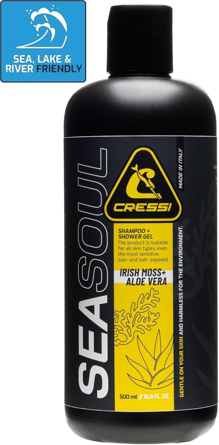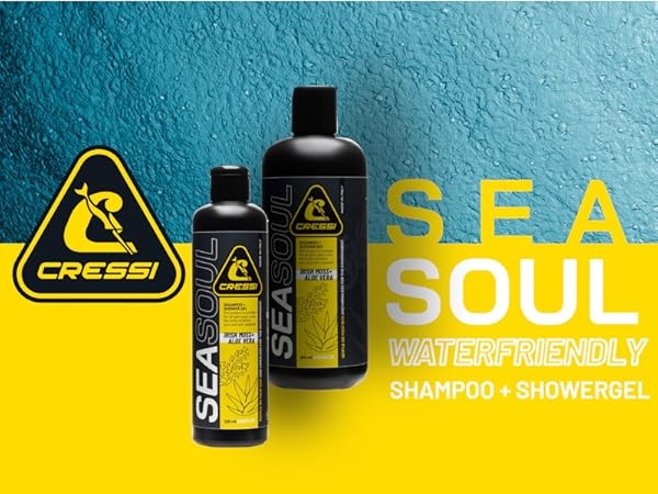 Cressi Sea Soul è uno shampoo e gel doccia naturale ed ecologico che non solo nutre i capelli e la pelle, ma contribuisce anche a proteggere i nostri preziosi mari.