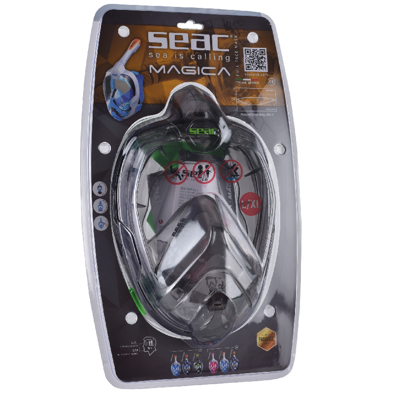 Come tutte le maschere integrali della linea Seac, anche Seac Magica presenta l’esclusivo sistema brevettato di circolazione separata dell’aria inspirata e espirata che permette davvero una respirazione naturale, come fuori dall’acqua, senza fastidiosi rumori o senso di affaticamento.