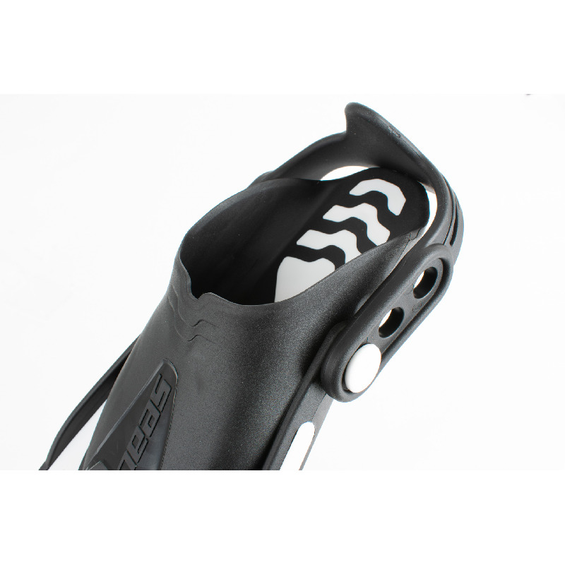 Sono facili da indossare grazie al pratico cinghiolo in gomma regolabile in 6 posizioni, con talloniera rinforzata, tiene ben ferma la pinna evitando ogni fastidio e perdita di spinta.