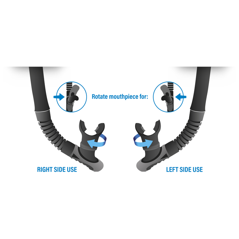 Comodo e facile da agganciare alla maschera da entrambi i lati grazie alla pratica clip, SEAC Reverse Dry ha un boccaglio in silicone orientabile sia a destra che a sinistra, in base ai gusti personali e alle didattiche seguite.